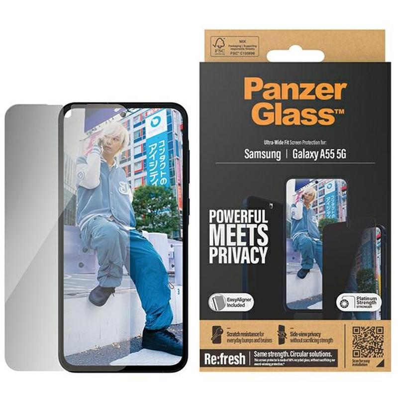 • PanzerGlass Ultra-Wide Fit Privacy EasyAligner AntiBacterial Panzerglas für Samsung Galaxy A55