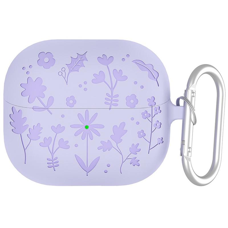 Samsung Galaxy Buds3/Buds3 Pro Blume Muster Flüssigsilikonhülle mit Karabiner - hell lila