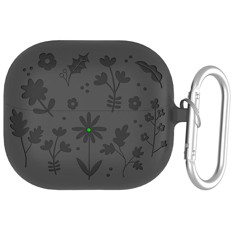 Samsung Galaxy Buds3/Buds3 Pro Blume Muster Flüssigsilikonhülle mit Karabiner - dunkelgrau