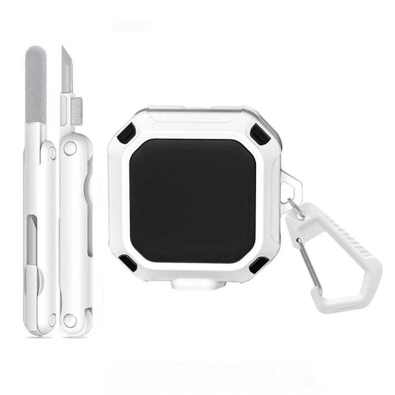 Samsung Galaxy Buds4/Buds4 Pro Robustes Etui mit Karabinerhaken und Reinigungsstiften - Weiß / Schwarz