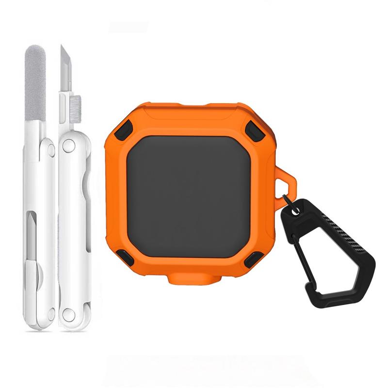 Die Hülle wird mit einem praktischen Metallkarabiner geliefert, mit dem Sie Ihre Ohrhörer sicher an einem Rucksack, einer Gürtelschlaufe oder einem Schlüsselbund befestigen können, sodass sie immer griffbereit sind. Ein multifunktionaler Reinigungsstift ist ebenfalls enthalten, um Staub, Schmutz und Ablagerungen von den Ohrhörern und Ladekontakten zu entfernen und Ihr Gerät sauber und funktionsfähig zu halten. Dank präziser Ausschnitte und vollständiger Kompatibilität mit kabellosem Laden können Sie Ihre Ohrhörer aufladen, ohne die Hülle zu entfernen.
