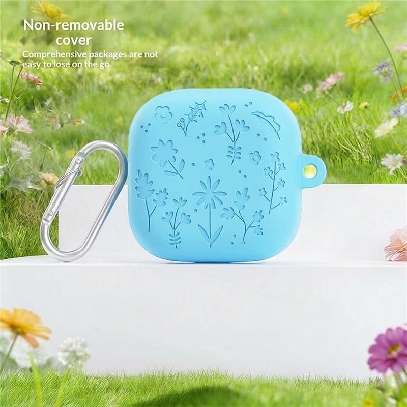 Silikonhülle mit Blumenmuster, Reinigungsstiften und Karabinerhaken für Samsung Galaxy Buds4, Galaxy Buds4 Pro