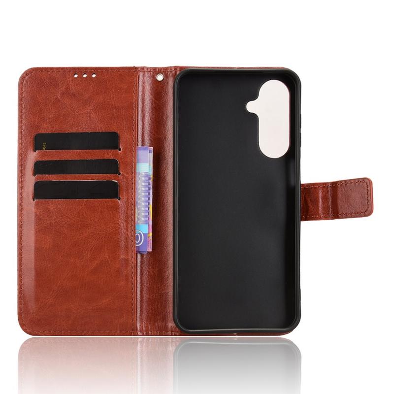Verleihen Sie Ihrem neuen Samsung Galaxy M36 einen raffinierten Vintage-Look und ersetzen Sie gleichzeitig Ihr tägliches Portemonnaie. Die Außenseite aus Polyurethan mit Crazy-Horse-Struktur und die stoßdämpfende TPU-Schale schützen vor Stürzen und Kratzern, während clevere Fächer für Karten und Bargeld sorgen.