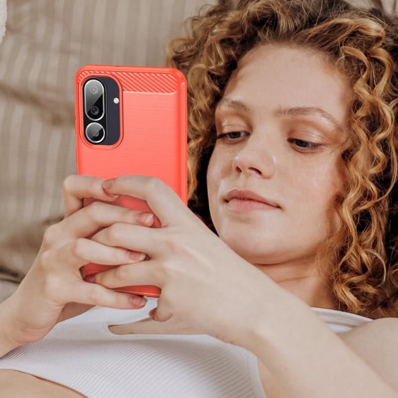 Geben Sie Ihrem Samsung Galaxy M56, Galaxy F56 den stilvollen Schutz, den es verdient, mit diesem Carbon Fiber Texture Brushed Case. Es kombiniert ein elegantes gebürstetes Finish mit einem robusten Schutzdesign und schützt Ihr Gerät vor täglichen Stößen und Kratzern, während es einen komfortablen Griff bietet.