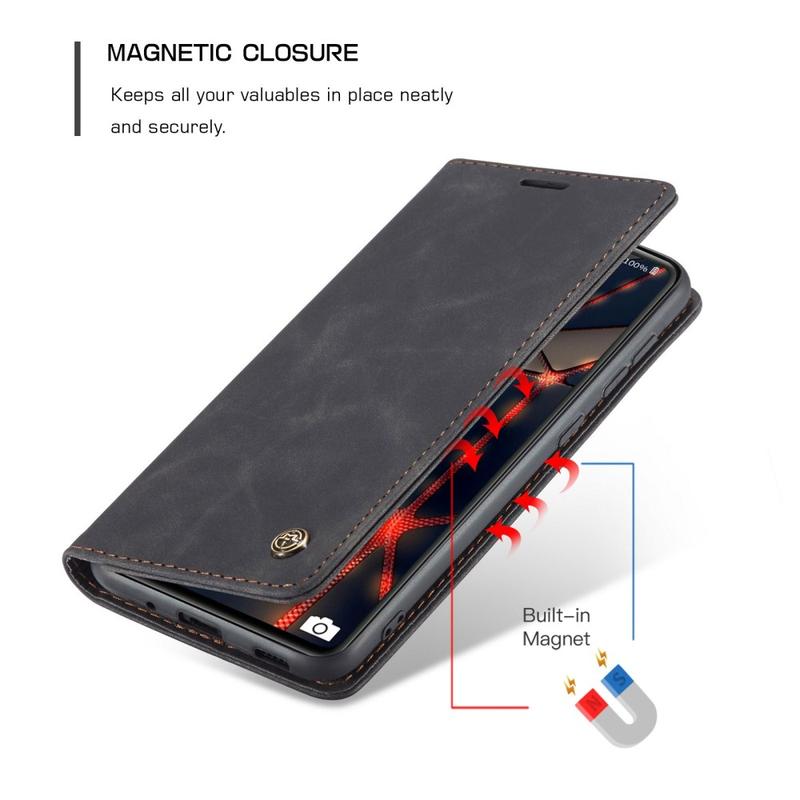 - Eingebaute Magnete halten die Caseme 013 Series Wallet-Hülle geschlossen