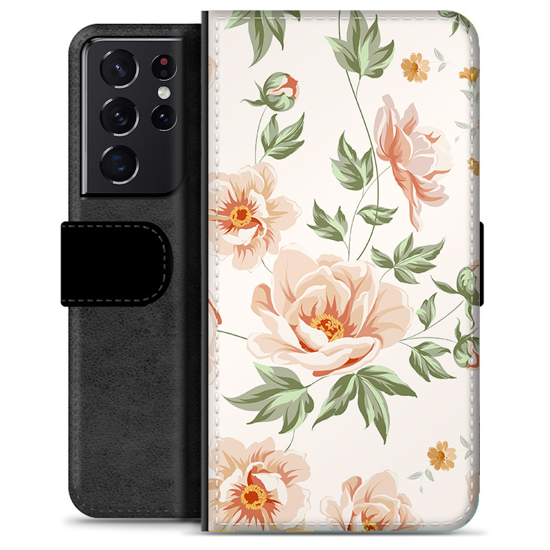Dies ist eine Premium Schutzhülle mit Geldbörse für das Samsung Galaxy S21 Ultra 5G, die eine elegante Kombination aus Funktionalität und Stil bietet. Die Hülle zeichnet sich durch ein wunderschönes Blumenmuster aus, das einen Hauch von Eleganz und Femininität verleiht. Entworfen, um das Telefon sicher zu schützen, ist die Hülle mit einer strapazierfähigen, stoßdämpfenden Silikon-Innenschale ausgestattet, die das Gerät vor Stürzen und Kratzern schützt.