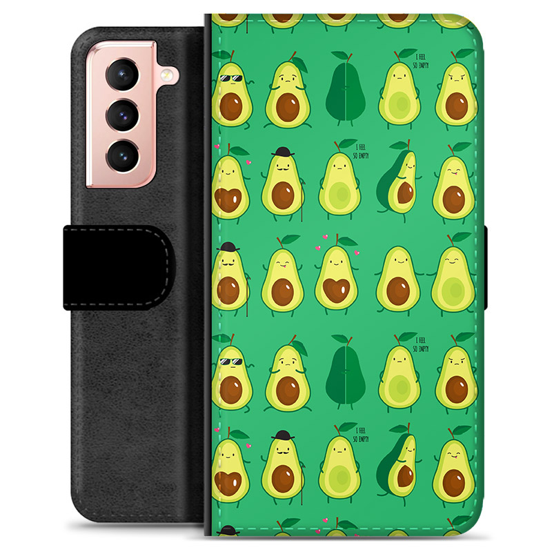 Samsung Galaxy S21 5G Premium Schutzhülle mit Geldbörse - Avocado Muster