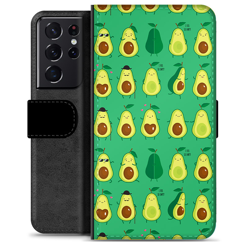 Samsung Galaxy S21 Ultra 5G Premium Schutzhülle mit Geldbörse - Avocado Muster