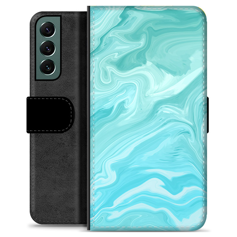 Samsung Galaxy S22+ 5G Premium Schutzhülle mit Geldbörse - Blauer Marmor