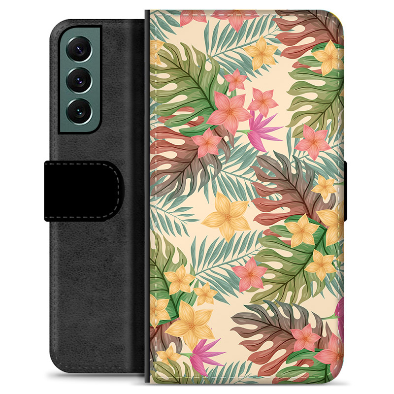 Samsung Galaxy S22+ 5G Premium Schutzhülle mit Geldbörse - Pinke Blumen