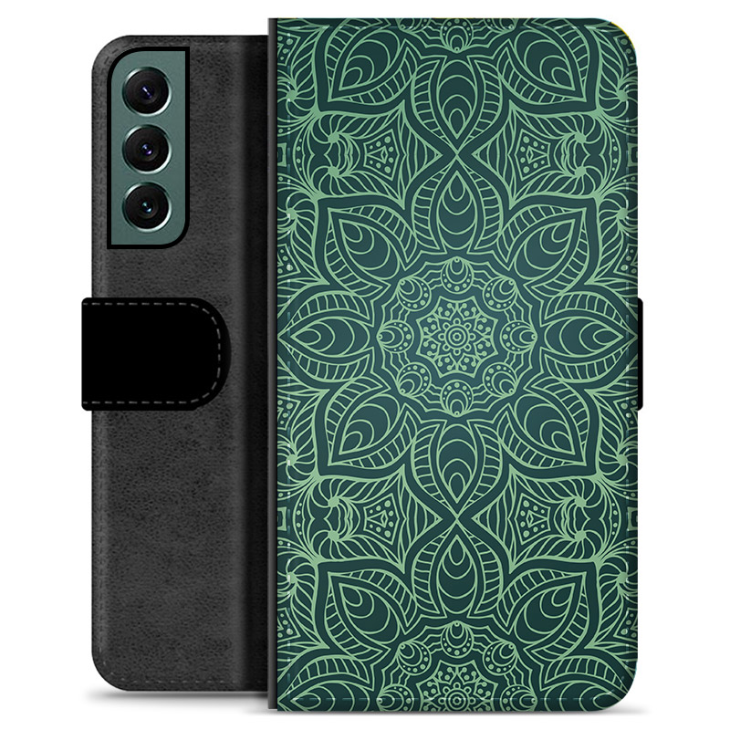 Samsung Galaxy S22+ 5G Premium Schutzhülle mit Geldbörse - Grünes Mandala