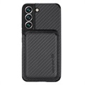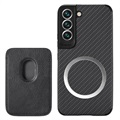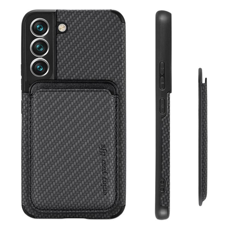Samsung Galaxy S22 5G Magnetisches Cover mit Kartensteckplatz - Karbonfaser - Schwarz