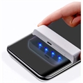 - Legen Sie den Displayschutz aus gehärtetem Glas vorsichtig auf den Bildschirm des Geräts und warten Sie, bis sich der UV-Kleber vollständig verteilt hat, ohne ihn anzudrücken