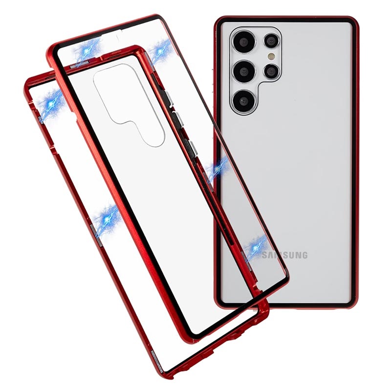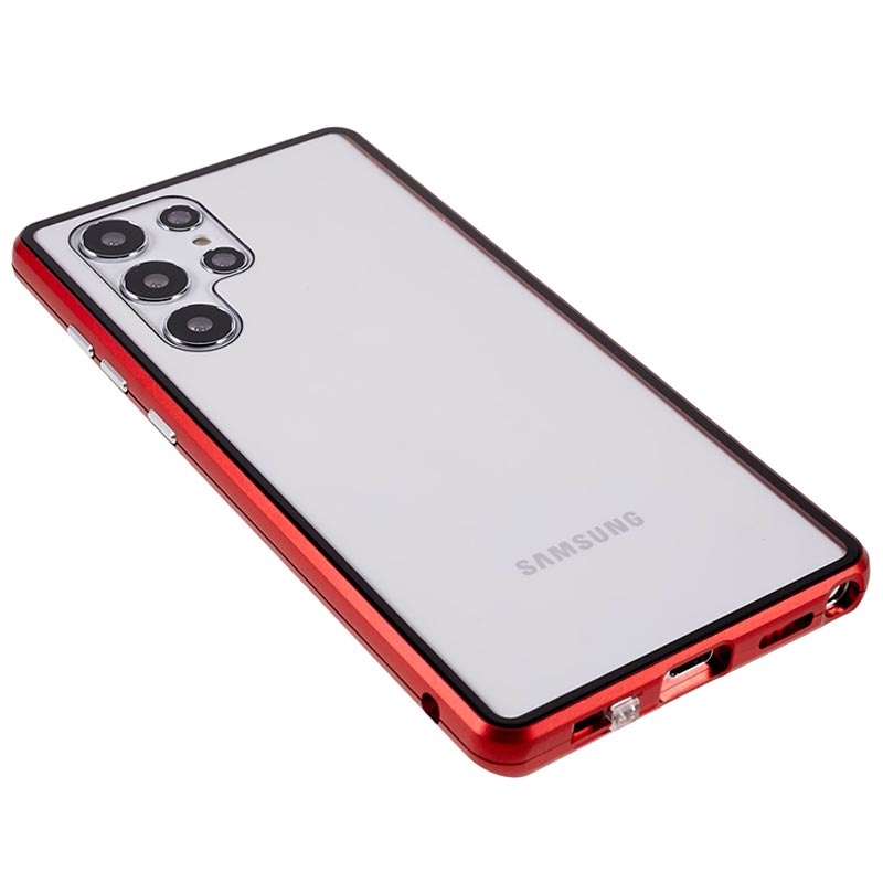 Samsung Galaxy S22 Ultra 5G Magnetisches Cover mit Panzerglas - Rot