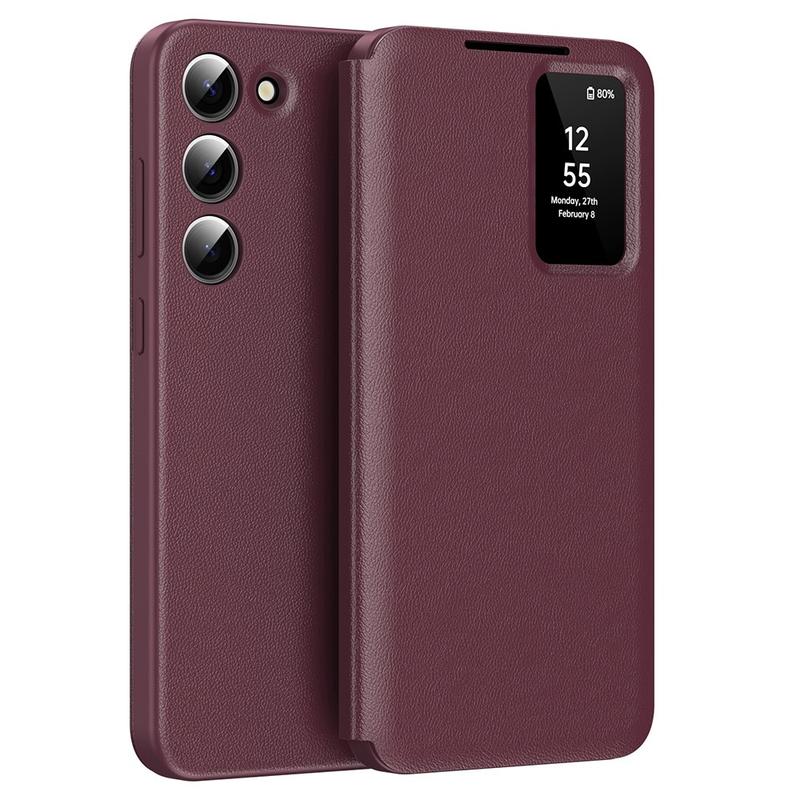Samsung Galaxy S23 Smart Clear View Flip Hülle mit Kartenschlitz - Weinrot