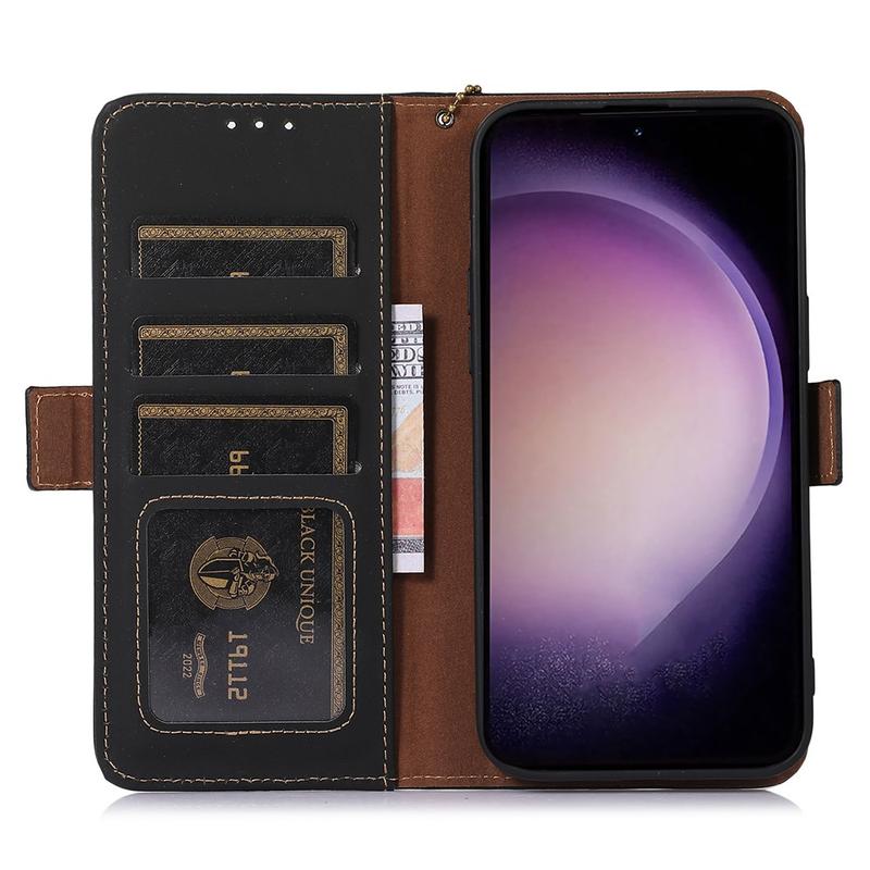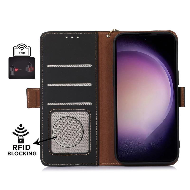 - Brieftaschen-Ledertasche mit RFID-Blockierungsschicht für Samsung Galaxy S23 FE
