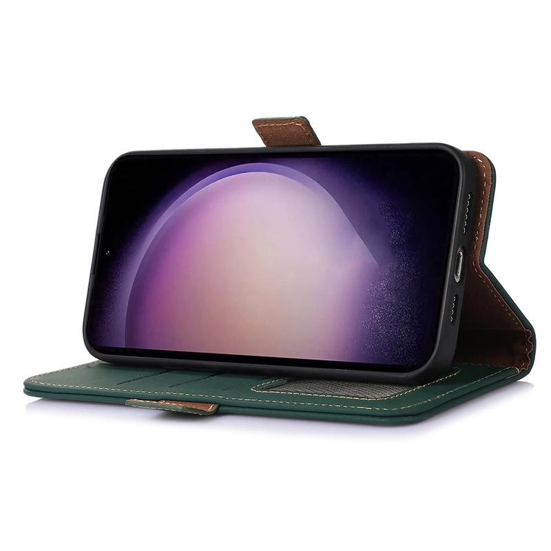 Samsung Galaxy S23 FE Lederhülle mit Geldbörse mit RFID - Grün
