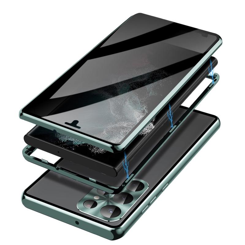 Samsung Galaxy S23 Ultra 5G Magnetisches Cover mit Panzerglas - 9H - Privat - Grün
