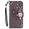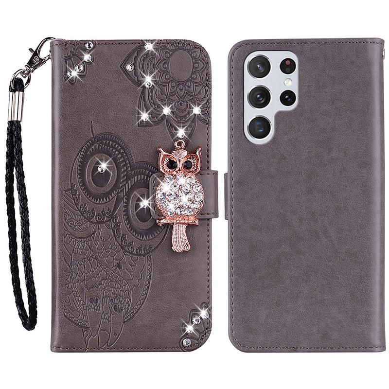 Samsung Galaxy S24 Ultra Eule Strass Wallet Hülle - grau