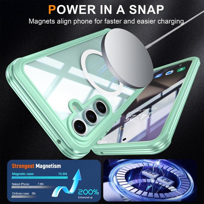 Schützen Sie Ihr Samsung Galaxy S24 FE mit der Kombination aus magnetischer Hülle und gehärteter Glasschutzfolie. Diese zweischichtige Hülle verfügt über eine starke PC-Rückseite und TPU-Kanten für die Stoßdämpfung, während die gehärtete Glasfolie vor Kratzern schützt. Der Magnetverschluss bietet zusätzliche Sicherheit und Komfort für den täglichen Gebrauch, so dass dies eine ideale Wahl für diejenigen, die Schutz und Stil zu priorisieren.