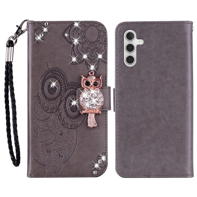 Samsung Galaxy S24 FE Eule Strass Wallet Hülle - grau