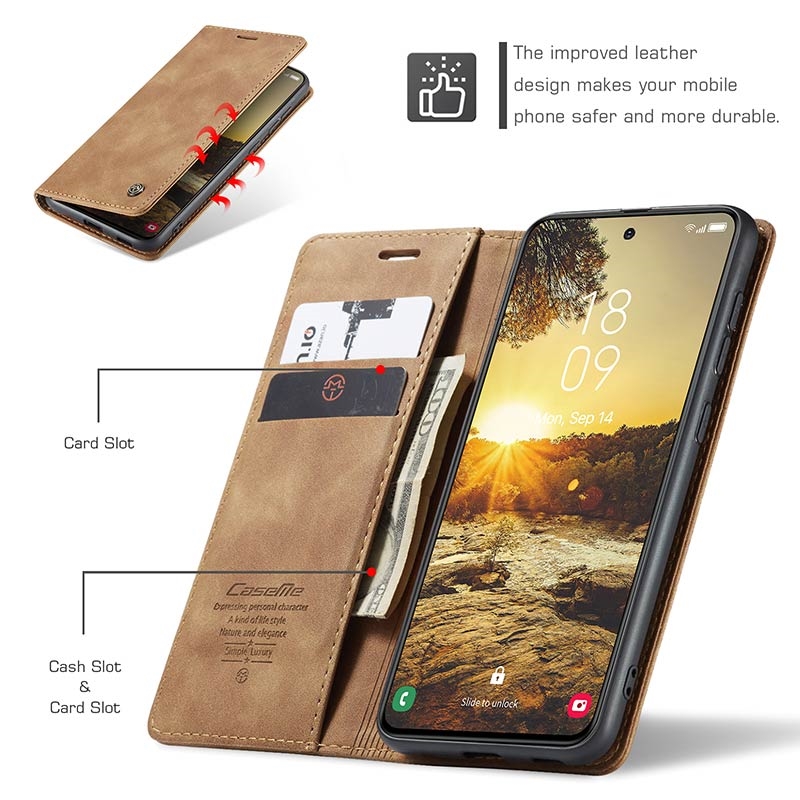 • Caseme 013 Serie Schutzhülle mit Geldbörse mit Magnetverschluss für Samsung Galaxy S24 FE
