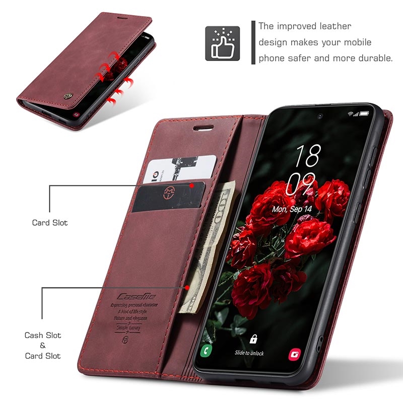 • Caseme 013 Serie Schutzhülle mit Geldbörse mit Magnetverschluss für Samsung Galaxy S24 FE