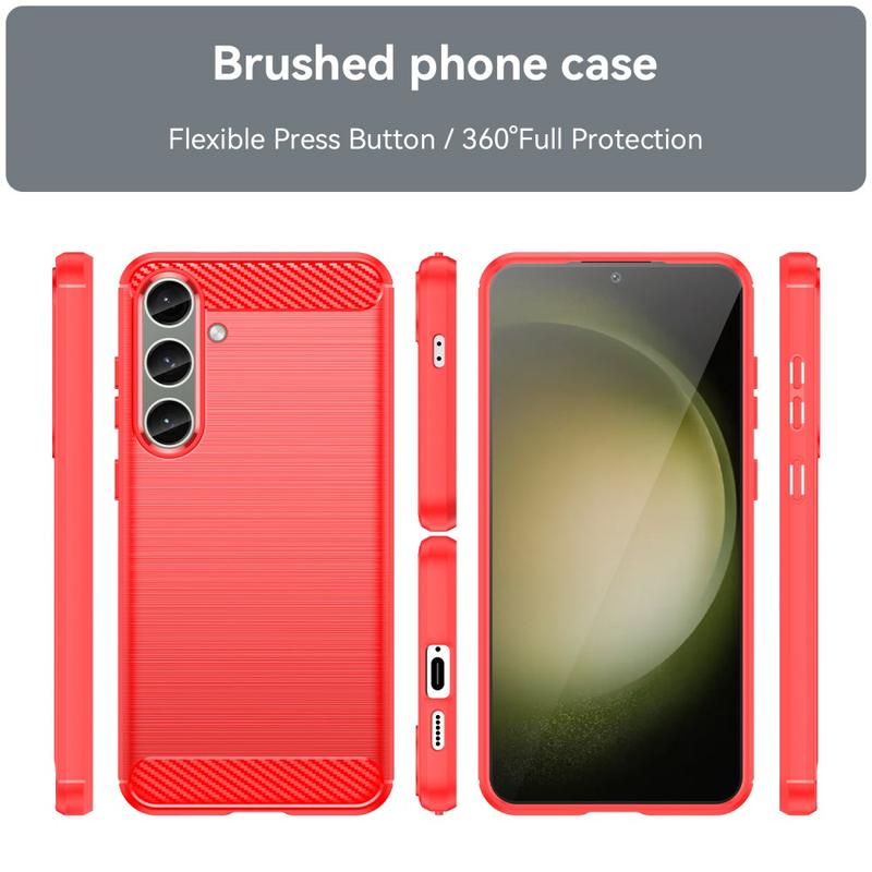 Samsung Galaxy S24+ Gebürstete TPU Hülle - Karbonfaser - Rot