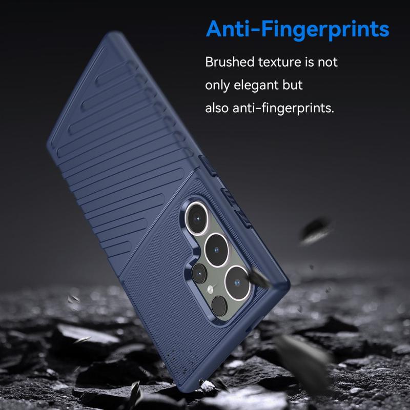 Verleihen Sie Ihrem Samsung Galaxy S24 Ultra einen Hauch von Stil und schützen Sie es gleichzeitig vor täglichen Schäden mit einer Premium-TPU-Hülle aus der Thunder-Serie. Diese Hülle hat ein Twill-Textur-Design, das einen guten Halt bietet und ein versehentliches Herunterfallen Ihres Samsung Galaxy S24 Ultra verhindert. Es hat auch präzise Ausschnitte und Tastenabdeckungen, die einen einfachen Zugriff auf alle Anschlüsse, Tasten und Funktionen Ihres Telefons bieten. Insgesamt ist diese TPU-Hülle eine großartige Option, wenn Sie nach einer stilvollen und schützenden Hülle für Ihr Samsung Galaxy S24 Ultra suchen.