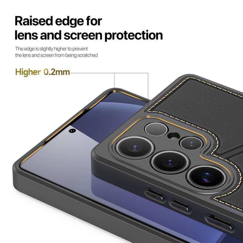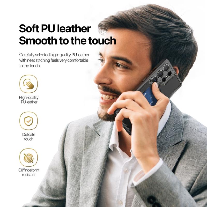 Halten Sie Ihr Samsung Galaxy S25 Ultra sicher und stilvoll mit dem Dux Ducis Rafi II Series Magnetic Case. Diese Premium-Hülle kombiniert ein elegantes Leder-Finish mit einem robusten TPU-Innenleben für umfassenden Schutz. Es ist auf Funktionalität ausgelegt und verfügt über einen eingebauten Ständer, einen Magnetverschluss und Kartenfächer, wodurch es ideal für Benutzer ist, die sowohl Komfort als auch Eleganz benötigen.