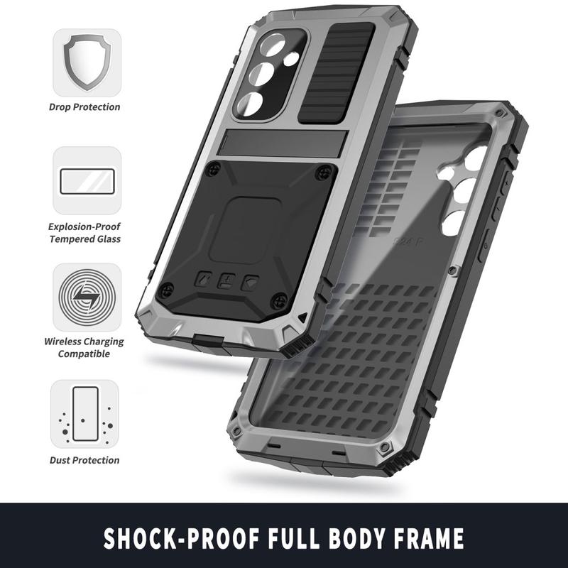 • R-Just Premium Hülle mit Kickstand & gehärtetem Glas Displayschutzfolie für Samsung Galaxy S25