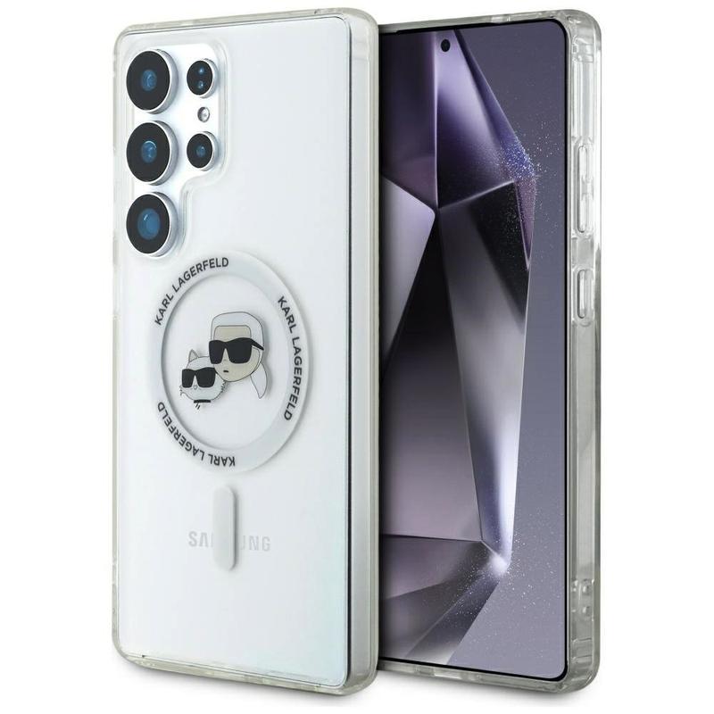 Veredeln Sie Ihr Samsung Galaxy S25 Ultra mit dem Karl Lagerfeld IML Karl&Choupette Heads MagSafe Case - wo Luxus auf Praktikabilität trifft!