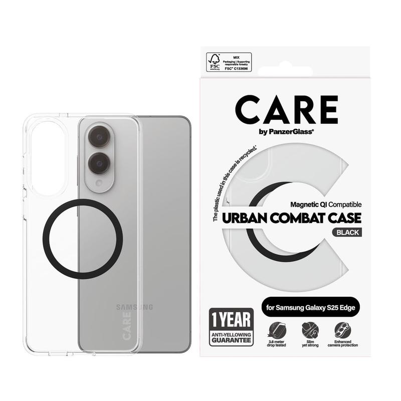 Care by PanzerGlass Transparent Urban Combat Hülle für Samsung Galaxy S25 Edge - MagSafe-kompatibel