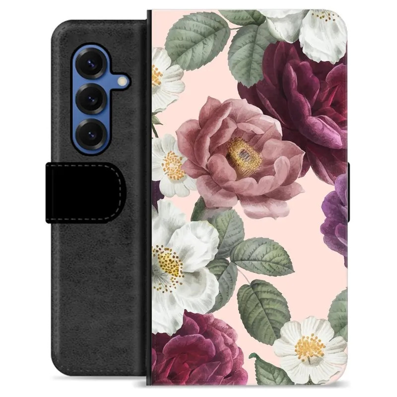Samsung Galaxy S25 Premium Schutzhülle mit Geldbörse - Romantische Blumen