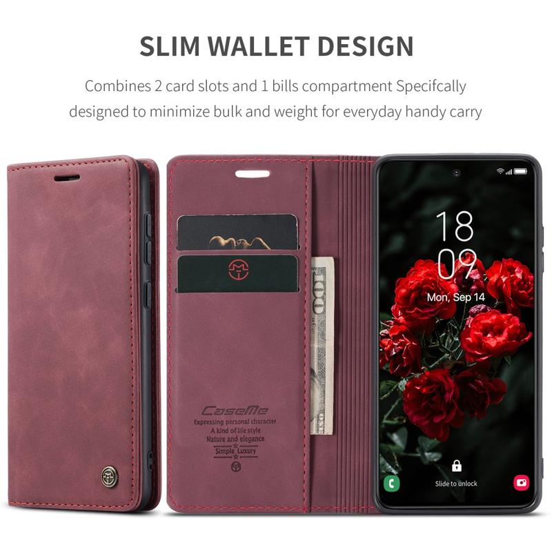 - Eingebaute Magnete halten die Caseme 013 Series Wallet-Hülle geschlossen