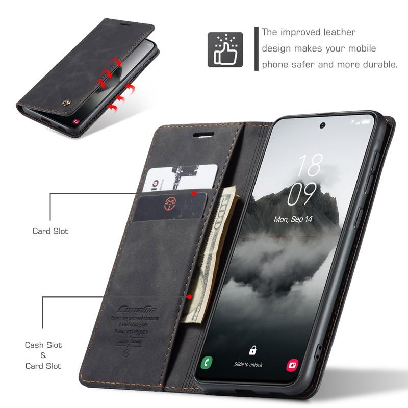 - Eingebaute Magnete halten die Caseme 013 Series Wallet-Hülle geschlossen