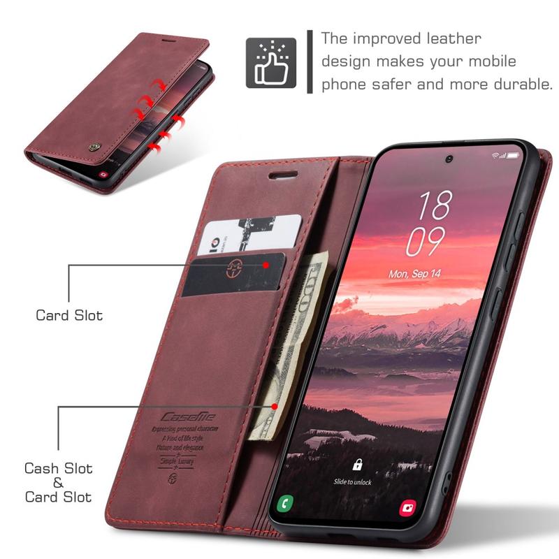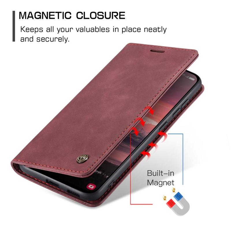 - Eingebaute Magnete halten die Caseme 013 Series Wallet-Hülle geschlossen
