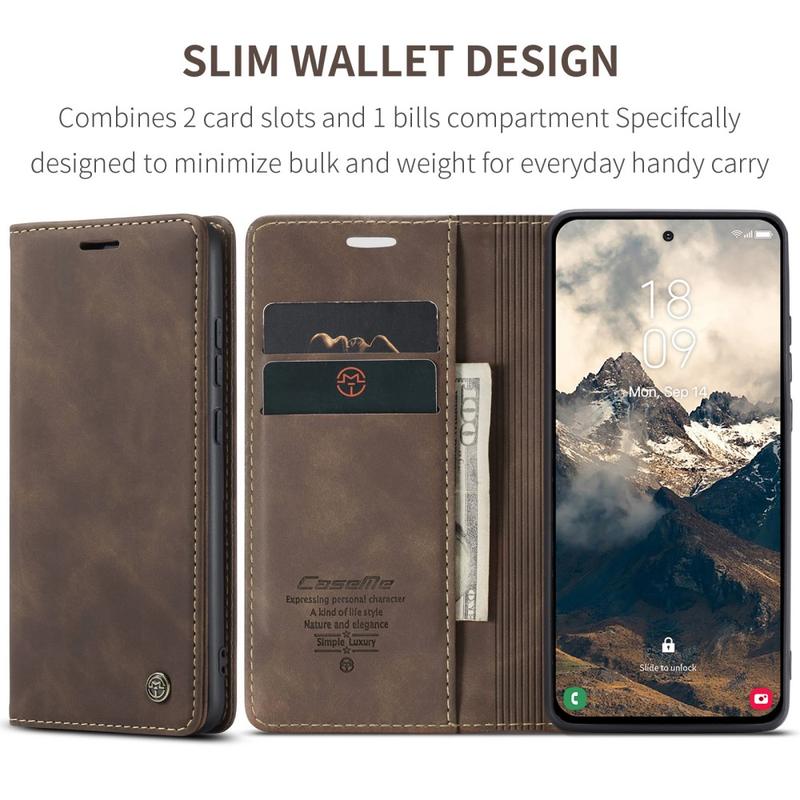 - Eingebaute Magnete halten die Caseme 013 Series Wallet-Hülle geschlossen