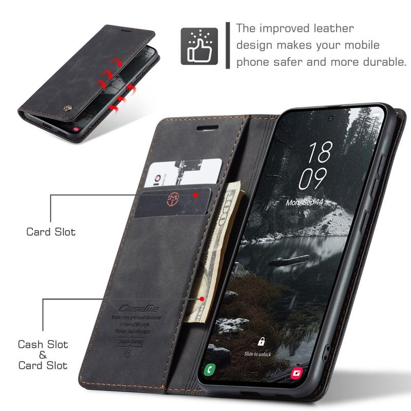 - Eingebaute Magnete halten die Caseme 013 Series Wallet-Hülle geschlossen