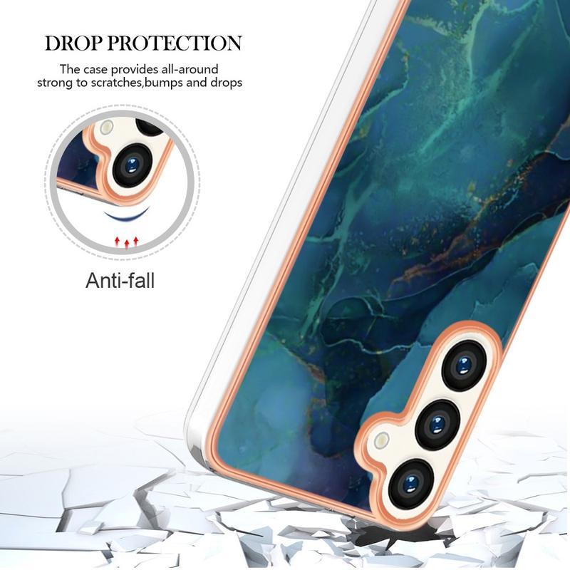 Samsung Galaxy S25+ Galvanisierte IMD TPU-Hülle mit Marmormuster - Grün