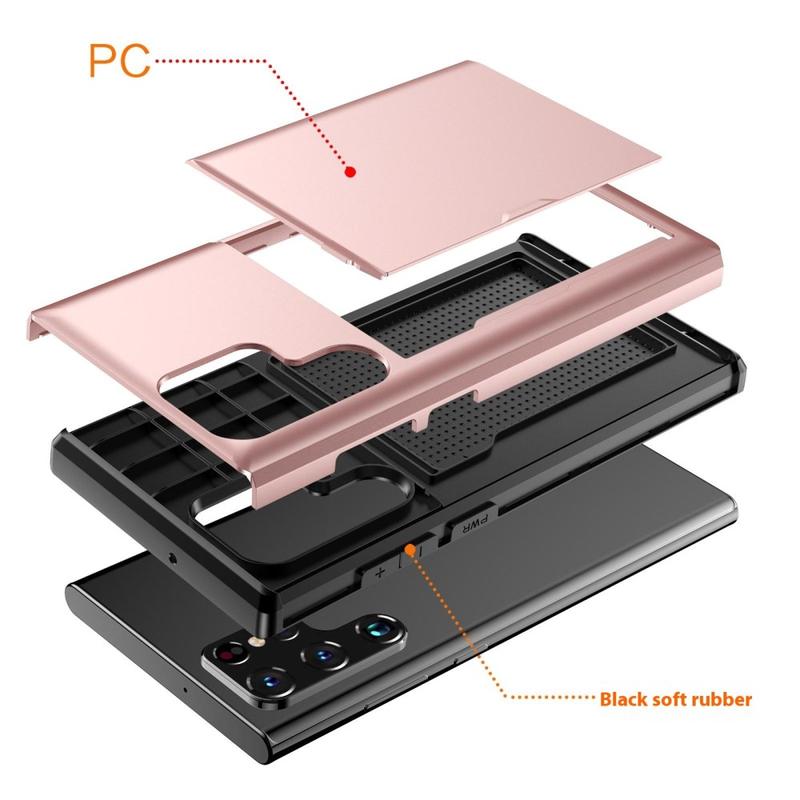 Samsung Galaxy S25 Ultra Hybrid-Hülle mit Verschiebbarem Kartensteckplatz - Roségold
