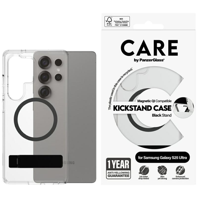 Samsung Galaxy S25 Ultra PanzerGlass Care Kickstand Hülle - MagSafe Kompatibel - Durchsichtig / Schwarz