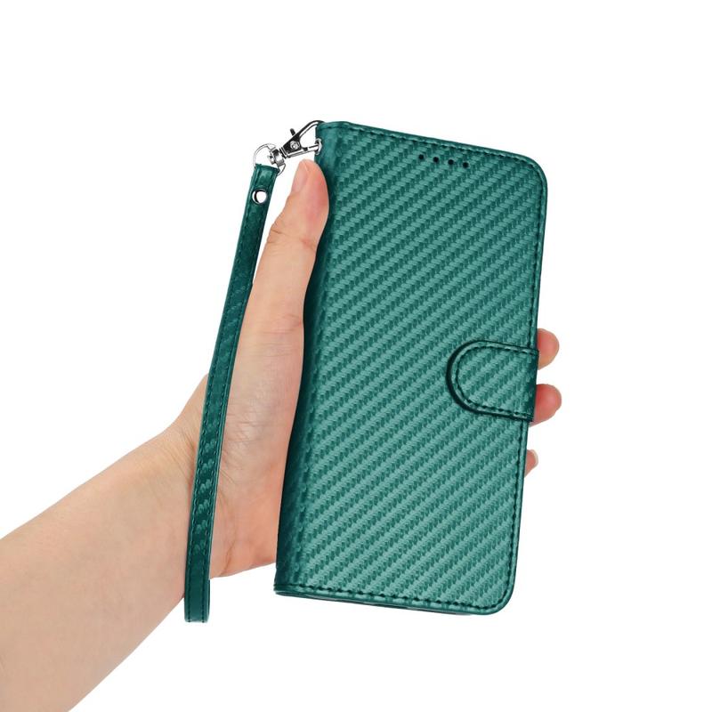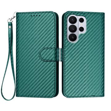 Samsung Galaxy S26 Ultra Premium Wallet Hülle mit Riemen - Kohlefaserstruktur - Carbon Grün
