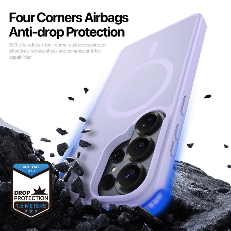 Schützen Sie Ihr Samsung Galaxy S26 Ultra mit einer eleganten, matten Hülle, die sich direkt auf MagSafe-Ladegeräte und -Zubehör aufstecken lässt. Die Yind Serie kombiniert eine kratzfeste PC-Rückseite mit stoßabsorbierenden TPU-Kanten und einem präzise ausgerichteten Magnetring und bietet kabellose Stromversorgung und Rundumschutz bei Stürzen ohne sperrige Taschen.