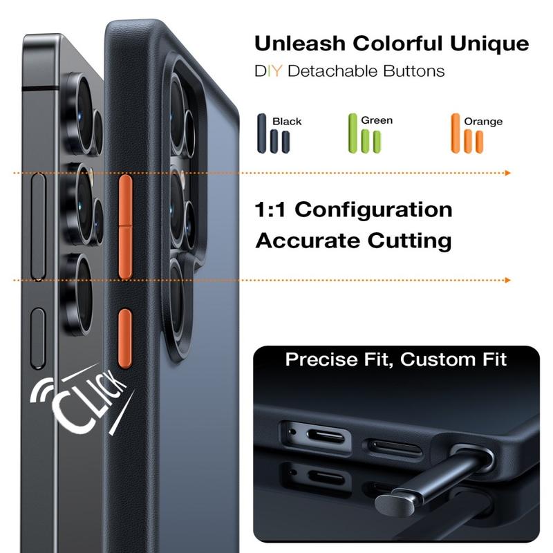 Die Hülle enthält drei austauschbare Tastensätze, mit denen du das Aussehen deines Samsung Galaxy S26 Ultra individuell gestalten kannst. Tauschen Sie die Tasten einfach aus, um sie an Ihren Stil, Ihr Outfit oder Ihre Stimmung anzupassen und ein einzigartiges, individuelles Aussehen zu schaffen.