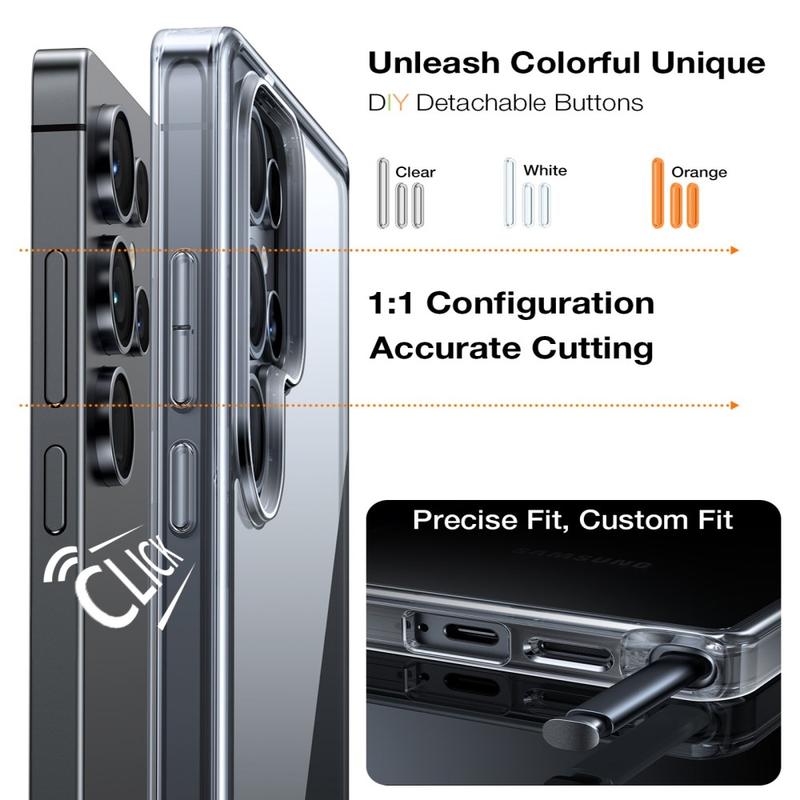 Die Hülle enthält drei austauschbare Tastensätze, mit denen du das Aussehen deines Samsung Galaxy S26 Ultra individuell gestalten kannst. Tauschen Sie die Tasten einfach aus, um sie an Ihren Stil, Ihr Outfit oder Ihre Stimmung anzupassen und ein einzigartiges, individuelles Aussehen zu schaffen.
