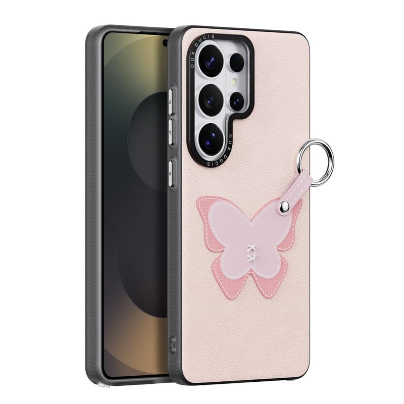 Samsung Galaxy S26 Ultra Dux Ducis Luvy Hülle mit Fingerring/Handschlaufe - Hellrosa / Schmetterling