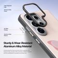Der Kameraschutzrahmen und die seitlichen Tasten sind aus einer Aluminiumlegierung gefertigt, präzise CNC-gefräst und mit feinem Sandstrahlen veredelt. Dies sorgt für eine lang anhaltende Farbe, Haltbarkeit und eine hochwertige Haptik, die durch dezente lasergravierte Details noch verstärkt wird.