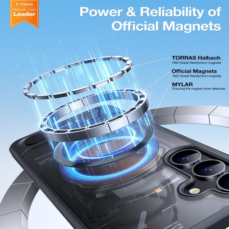 Die magnetische Hülle Torras Ostand L1 besteht aus einer sorgfältig ausbalancierten Kombination aus TPU, PC und Metall, die für Langlebigkeit sorgt, ohne Kompromisse beim Stil einzugehen. Diese Multi-Material-Konstruktion schützt Ihr Samsung Galaxy S26+ vor täglicher Beanspruchung und bietet gleichzeitig ein schlankes, modernes Aussehen, das sich angenehm in der Hand anfühlt.