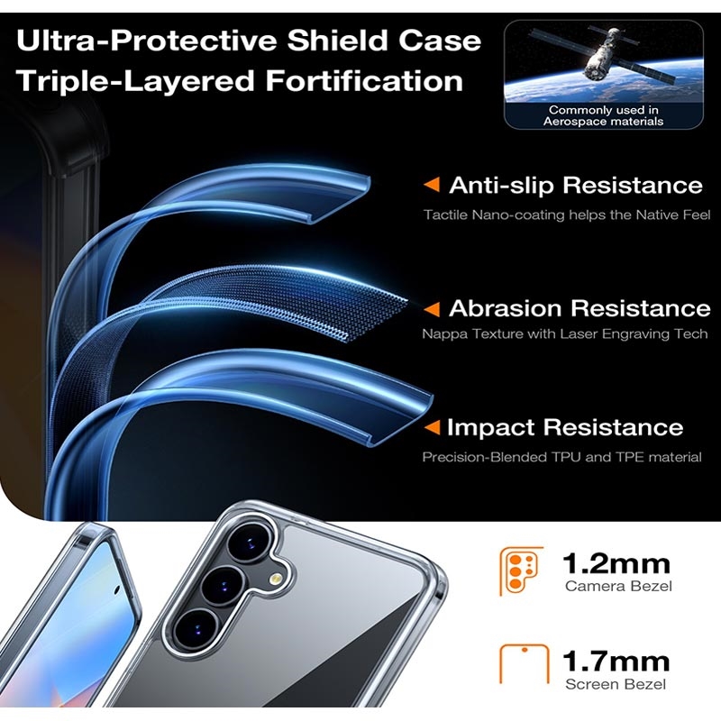 Das Gehäuse verfügt über eine interne stoßdämpfende Struktur und einen verstärkten TPU-Stoßfänger, der die Wucht von versehentlichen Stürzen und Stößen reduziert. Integrierte Luftpolsterzonen bieten zusätzlichen Schutz für den täglichen Gebrauch, ohne unnötig aufzutragen.